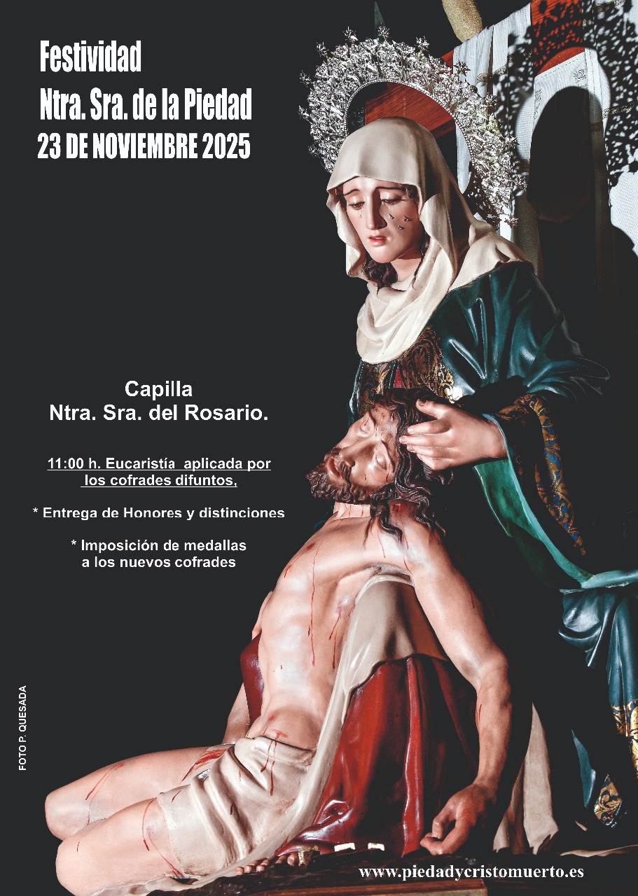 Os invitamos a la festividad de Nuestra Señora de La Piedad. Será el próximo domingo 23 de noviembre a las 11 horas en la capilla del Rosario.